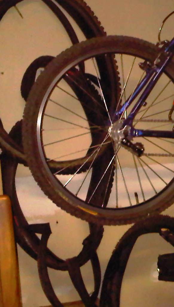 But I do drive the car to the mountain. (How I wish we lived close to a trailhead!) I do have a big pile of old rubber tires in my garage; I do have the old Rocky Mountain frame hanging in there, too.