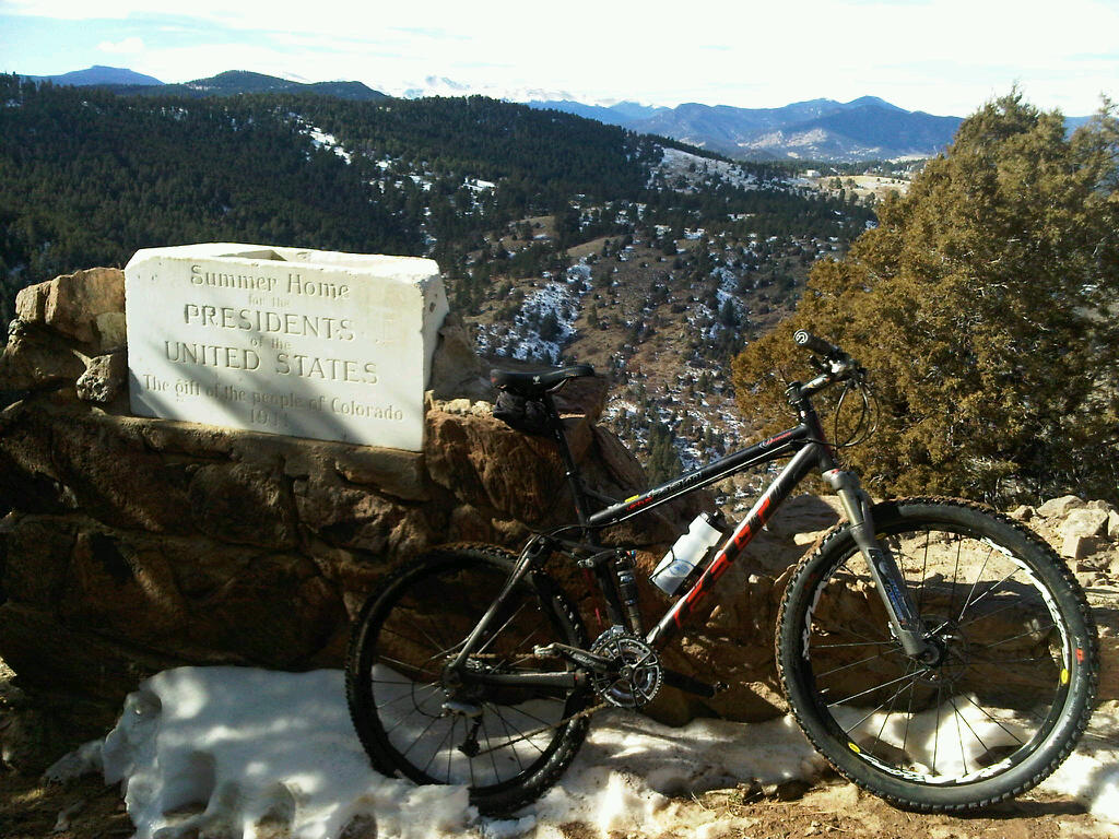 A cold snow is flurrying down this morning and it seems like a dream that I rode yesterday for over two hours, up the long trail of Mount Falcon, in the sun, along mostly dry trails, occasionally over long stretches of crunchy dry snow.