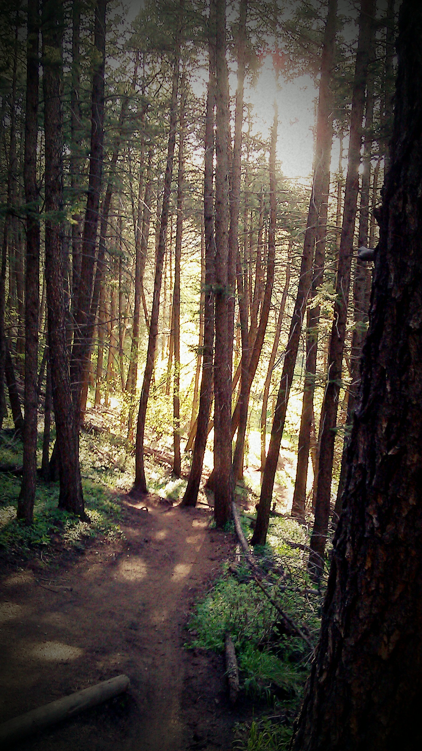 I ended up having a great time. The sun cascaded toward the mountains off in the west, and we looped around through the woods, taking our time, learning “by where we have to go,” the air cooling, our bikes staying under us, rolling onward.
