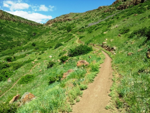I did sneak away for a quick ride at North Table Mountain a few days ago, which is gorgeous right now–green, steep, and empty.