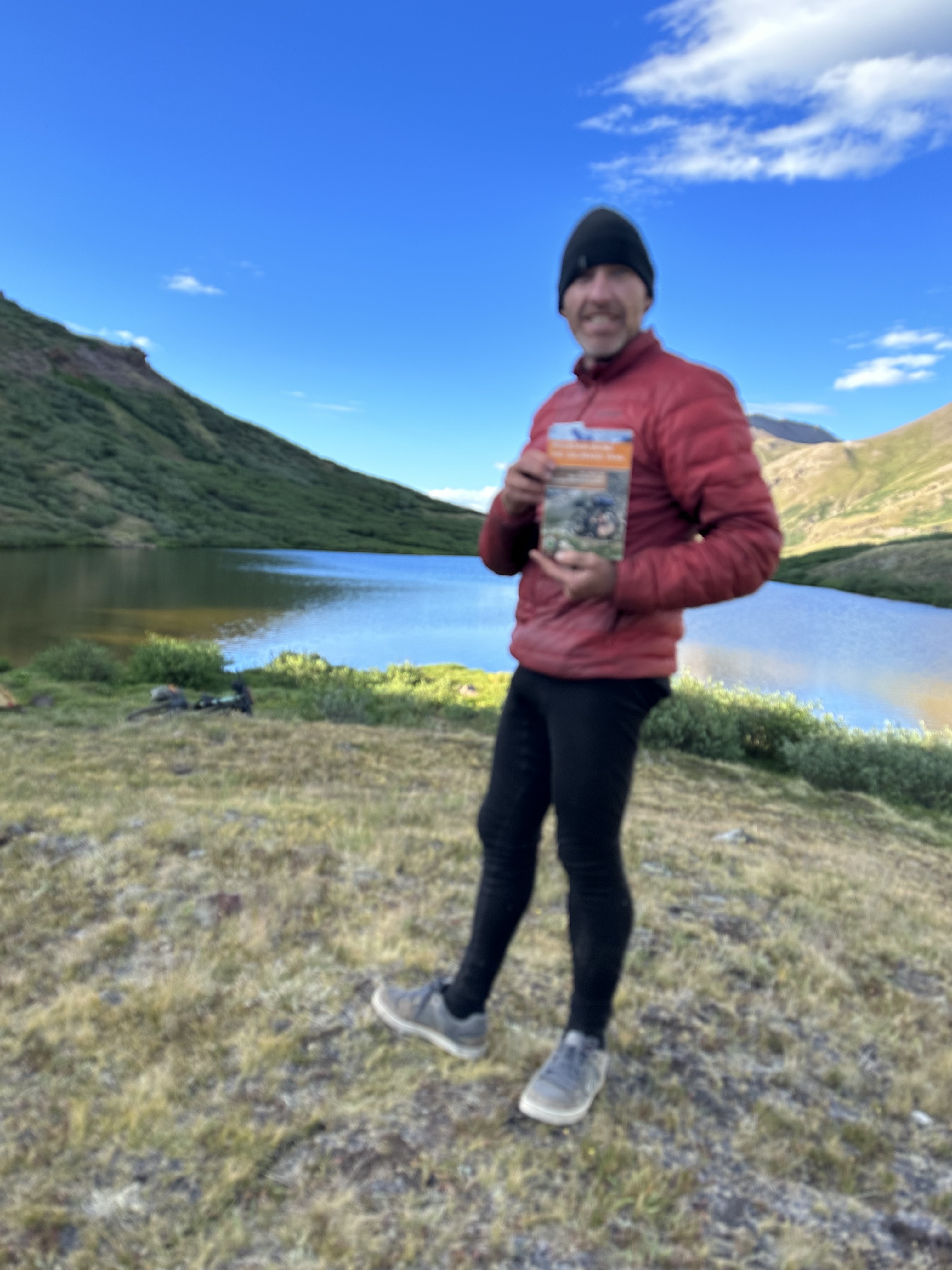 Best of all, it’s already out there in the wilds of Colorado. Recently, a friend and his son were riding the CT and took my book along. While out in the middle of nowhere, they came upon a fellow thru-rider from New Zealand, and from his pack he pulled out his own copy.